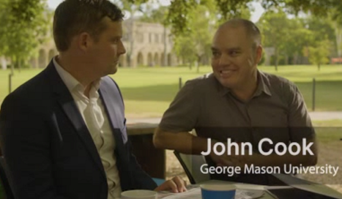 John Cook und seine Co-Autoren wollen, dass auch Laien ihren Konter-Strategie gegen Desinformation verstehen - und haben deshalb einen sogenannten "Video-Abstract" zu ihrem Aufsatz produziert: In einer Art Sketch erklären sie ihr Vorgehen; Foto: Screenshot/ERL